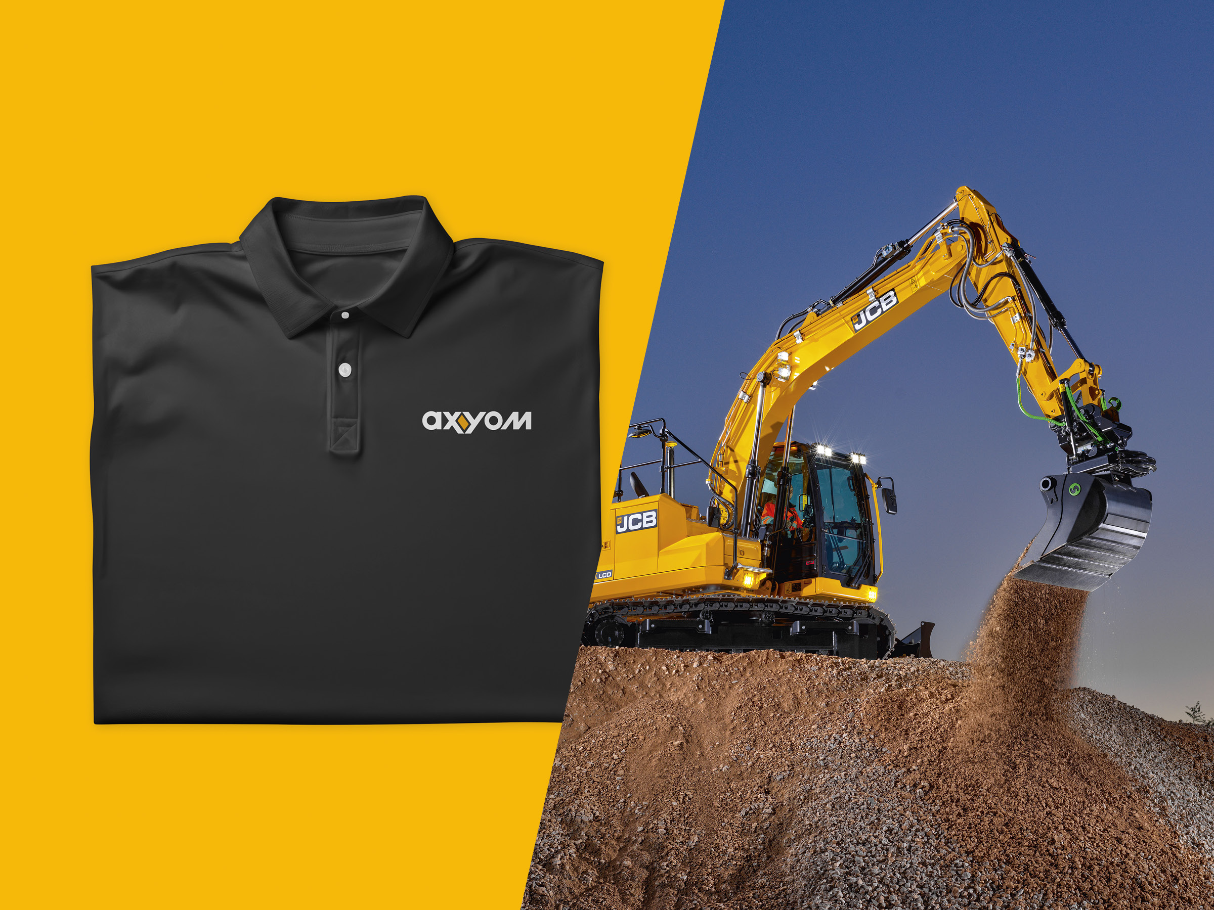 Le logotype repose sur une font linéale géométrique originale, rythmée par une série d’obliques, symbole de dynamisme. Le design intègre un rectangle jaune signalétique entre les lettres “x” et “y”, en référence à la mixité hommes/femmes et au partenariat avec JCB©, fournisseur historique d’engins.