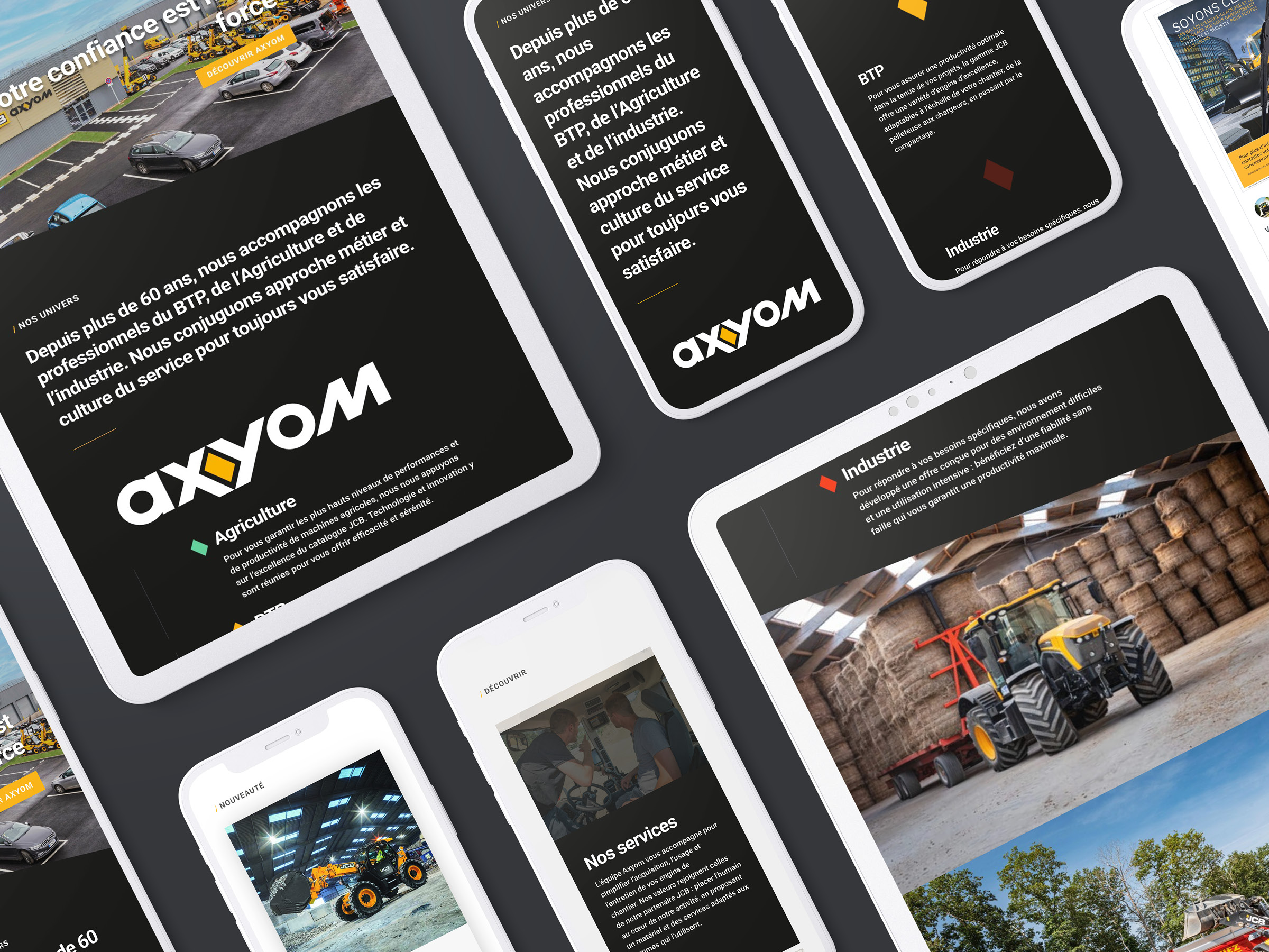 À la suite d’un travail stratégique de fond, FBSD a accompagné Axyom, spécialiste de la vente et location de véhicules BTP en Normandie, dans la création d’un site internet sur mesure et d’une identité visuelle cohérente et puissante.